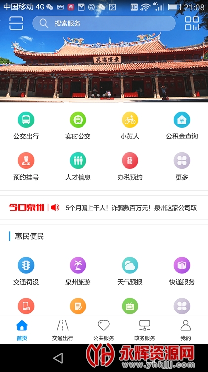 市民交通违章处理,天气、旅游、快递等在线查询,各项费用在线充值;