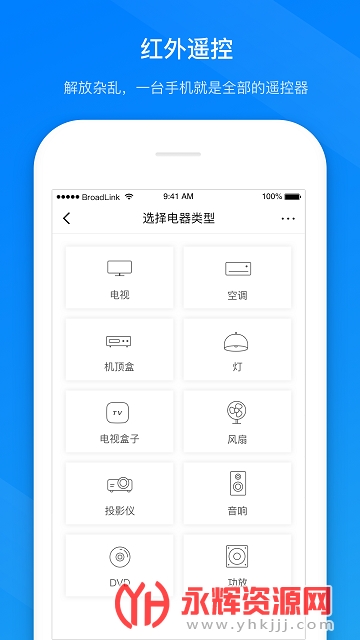 遥控你家里的所有红外家电:电视、空调、机顶盒、电视盒子、风扇、投影仪、功放、DVD、灯···,几乎所有红外家电都能遥控!