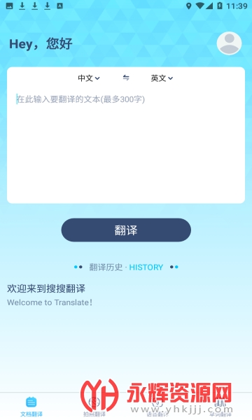 搜搜翻译app是一款十分好用的掌上翻译软件,使用这款软件可以为你快速对文字进行识别并且翻译,能满足你的所有翻译需求。有需要的朋友们快来永辉资源网下载吧!