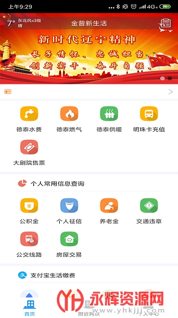 划分多个应用服务栏目,包括普通应用服务、个人信息查询、生活支付服务