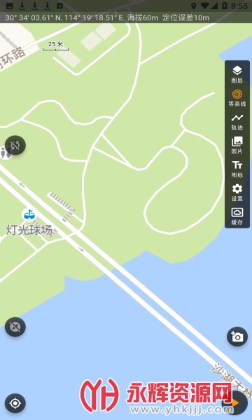 地图使用。支持地图的放缩和旋转,地图旋转锁定,地图正北回正。支持寻找方向模式。支持当前经纬度、海拔及定位误差的显示。地图瓦片自动缓存及离线下载。支持按区域下载离线地图,支持按轨迹下载离线地图