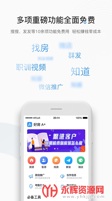 好房A+app为用户提供便捷的房产中介管理功能,如客户管理、代理租赁管理等。能有效的管理房源信息、及客户信息,摒弃其它软件诸多华而不实的功能,只提供最为有用、有效的功能,以期方便实用。