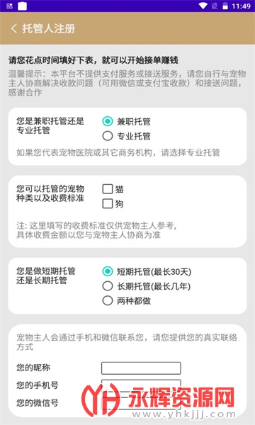 宠物托管宝app是为家有宠物的朋友们提供的应用软件,当你有事不能照顾自家主子时,可以寻找专业的人员为你进行托管。有需要的朋友们快来永辉资源网下载使用吧!