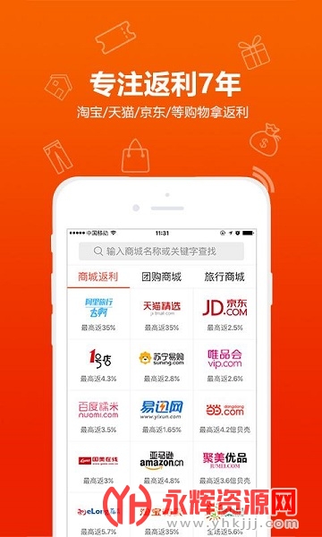 返利:支持淘宝、京东、唯品会、苏宁易购等600家购物返利,任何商品均有返利!