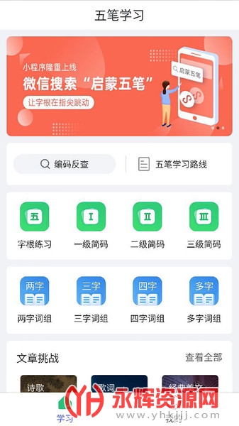 五笔学习app是一款非常专业的手机五笔学习软件,集合了五笔基础教学、字根练习、拆字练习、编码反查、错误记录练习、文章练习等多项实用功能,更是提供了编码反查功能,它具有汉字拆解图能够让用户以更方便、简单的方式学习五笔的输入。若是配合丰富的二级、三级简码和词组文章练习,定能让你快速的学会五笔,快来试试吧。