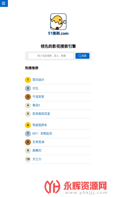 51搜剧app是为喜欢看剧的朋友们提供的影视搜索工具,在这里你只需要输入影视名称就可以为你搜索出来,让你更方便的进行观看。快来永辉资源网下载体验一番吧!