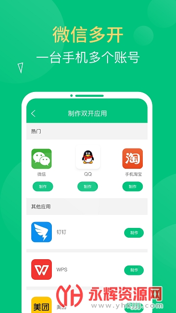 一键多开,简单方便无需等待,支持市面上绝大部分的应用进行多开。