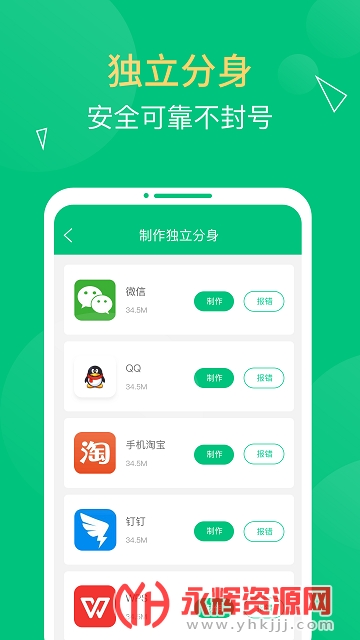 应用无限多开:突破一部手机只能使用一个账号在线的限制,多个账号,同时在线;无论是社交应用,游戏应用还是购物应用,都能畅享多开的乐趣。