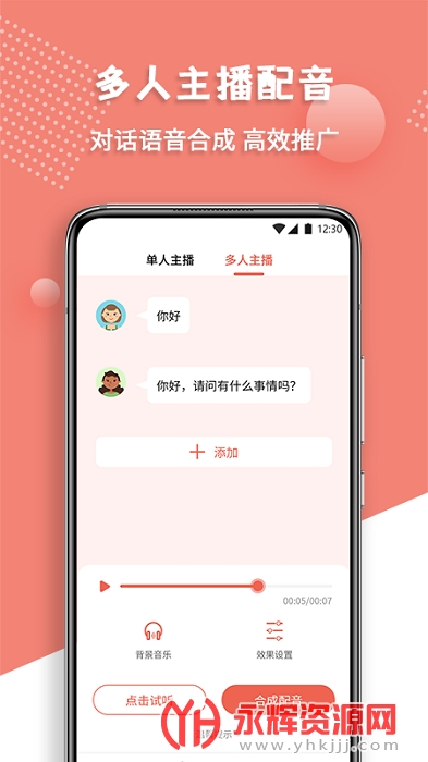 多人配音:支持同时选择多个主播配音,打造专属你的配音效果。