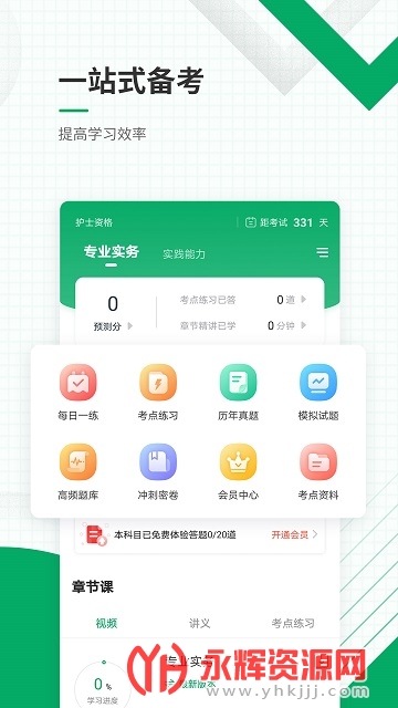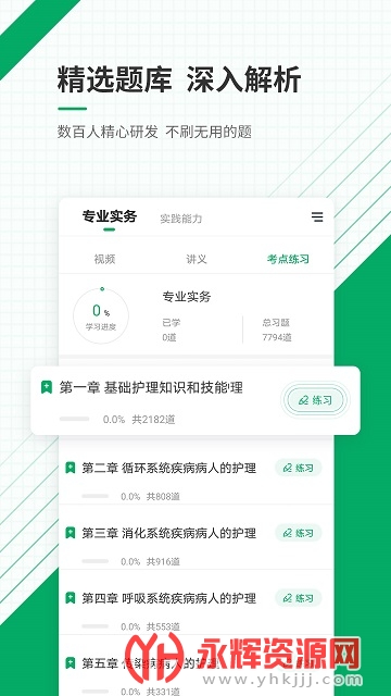 执业护士准题库app是一款非常专业的掌上教育教学手机软件,软件中专门为准备考执业护士资格证的朋友提供了可靠的优质教学资源,在这里聚合了各种名师优课和丰富题库帮助用户快速掌握各方面的知识点,有需要的朋友就快来永辉下载体验吧!
