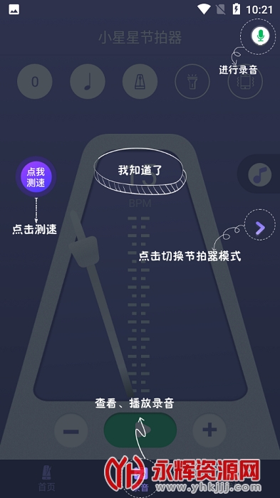 小星星节拍器是一款专业的音乐节拍器软件,可以帮助用户们轻松的在线编辑音乐,随时切换各种乐器,一边弹奏一遍录音,实时掌握自己的弹奏效果,能够及时的发现问题所在!欢迎感兴趣的朋友们前来永辉资源网下载!