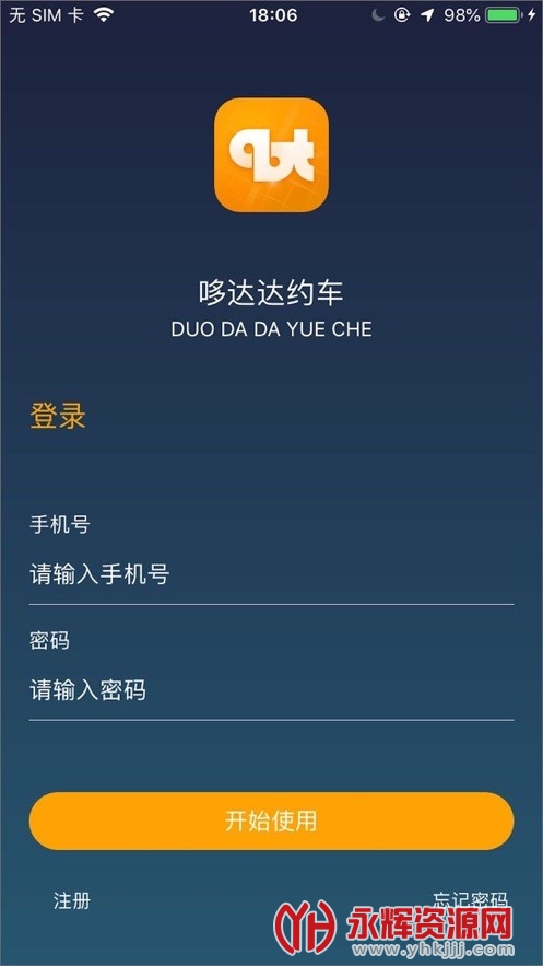 1、在哆达达司机软件应用app的登录页面,输入手机号码和验证号登录