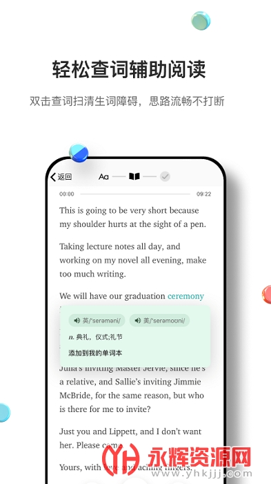 轻松的单词搜索,辅助阅读,双击搜索单词。