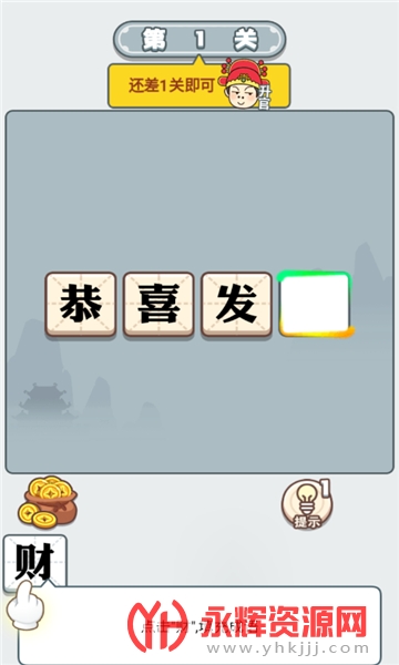 成语消除,从给出的文字中找出4个字组成成语,答对即可消除文字。