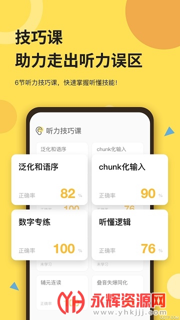 根据美国语言学家克拉申博士的“i+1”原理,将课程分为3个等级,每个等级匹配合适的听力材料,无需听力基础,踮踮脚就能听懂。