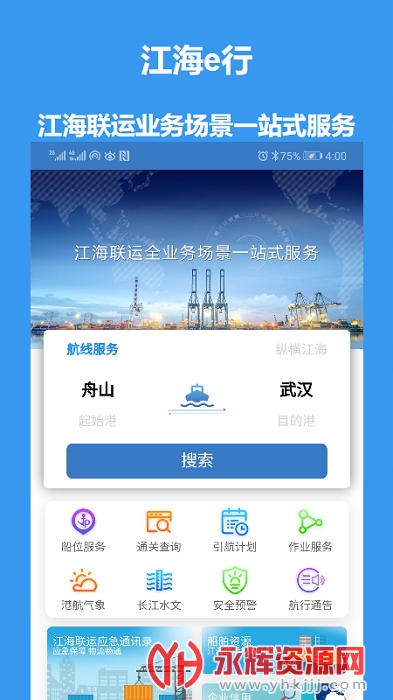 江海e行,是江海联运公共信息平台移动APP,提供最具权威的江海联运全场景一站式服务。