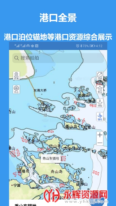 江海联运相关港口锚地、码头泊位、储罐、仓库、堆场等港航资源信息查询,以及港航资源靠泊动态数据实时查询。