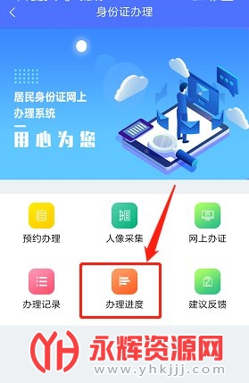 打开“皖警便民服务e网通”APP,找到“身份证办理”,点击进入,再找到“办理进度”,输入身份证号码跟验证码即可查询身份证办理进度。