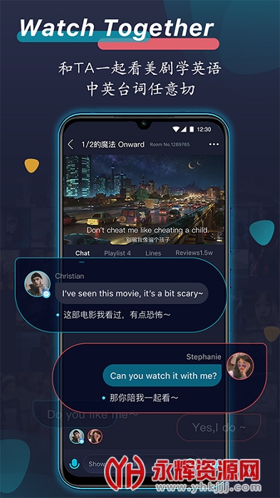 可以一边看海量欧美原片电影剧集一边用英语跟房间里朋友热聊剧情,中英文字幕四挡切换,让我们耳朵和心灵完全沉浸在外语世界里。找个异地朋友一起创建房间,同屏看剧,一边看一边吐槽。也可找开好的房间,认识新朋友,从此看剧学英语,不再孤单。