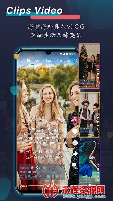 碎片时间刷起来,中英文台词任意切换。海量外国真人VLOG真实生活就在眼前。电影剧集,将原版英文影视,打造成个性化、简易化、趣味化的短视频沉浸式学习资料,大量的影视剪辑,中英文字幕自由切换,一边看视频练听力,一边看单词练翻译,全面综合提升英语听说读写能力。