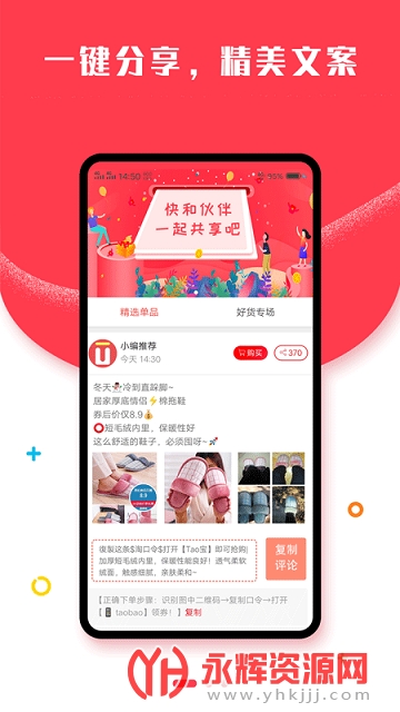 商品评论一键复制,分享文案的同时可以复制评论以及领券步骤;