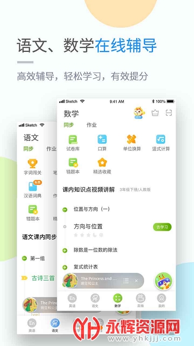 渝快学小学版app是专为小学生制作的一款学习助手软件,软件支持小学英语,语文,数学三大主课,并拥有直播课功能。各个科目内容线上学习,课后练习辅导等。