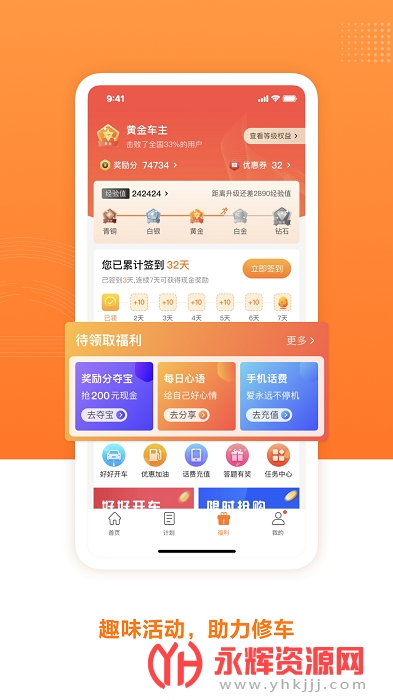 APP里每天都有丰富有趣的福利打卡活动,攒奖励分,赢优惠,好好开车福利多!