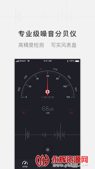 噪音分贝测试仪是一款专业级噪音检测应用。便捷式操作,写实界面设计,给您实体噪音计的使用体验,随时随地检测您身边的噪音分贝情况。所处环境是否适合办公学习?家用电器运行噪声是否异常?施工环境噪音是否对你有害?居家环境是否能够影响休息?想了解详细的噪音分贝情况吗?那就来下载体验吧!
