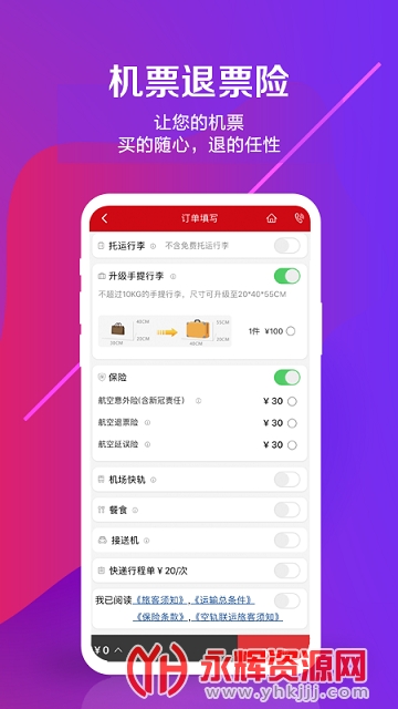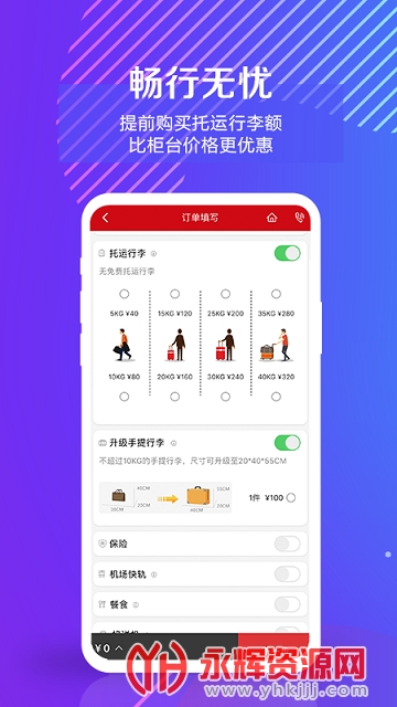 可在机票预订页面、增值服务购买页面、订单管理页面三个通道实现您行程中行李、餐食等附加服务的选购。