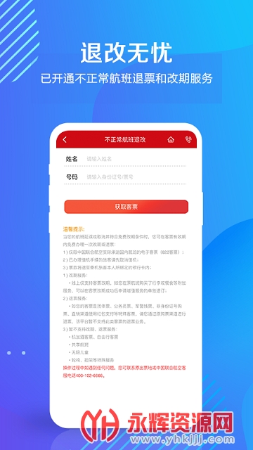 中国联合航空app是一款非常好用的手机航空票务生活服务手机软件,软件中可以帮助用户随时来购买去往各地的航空票务,随时退改航班,查询订单等等服务,可以说是特别的方便实用,有需要的朋友就快来永辉下载体验吧!