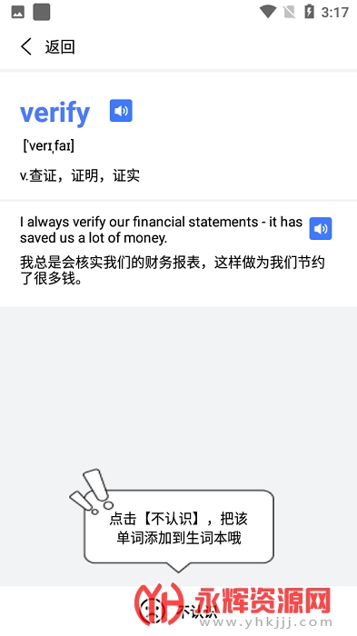 单词、例句语音朗诵:结合场景化的例句,使回忆单词更深刻,不容易忘记。