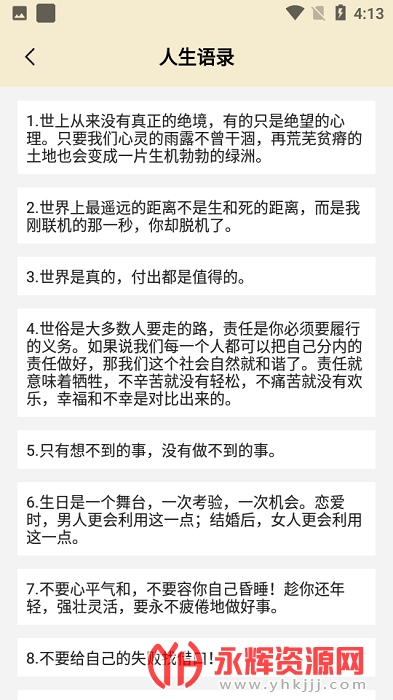 每天揭开新的一页,给自己一句鼓励的话,减少一些无谓的抱怨,制定一个必须达到的目标,生活就会充实一些,让你与喜欢的句子总是不期而遇,论伤感、励志、唯美、心动抑或认真、严肃都可以在这里找到共鸣,丰富而有温度的句子会在指尖滑动中带来刷不完的灵感和趣味。