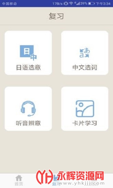 日语选意、中文选词,听音辨意,三种形式巩固联络,加深回忆。