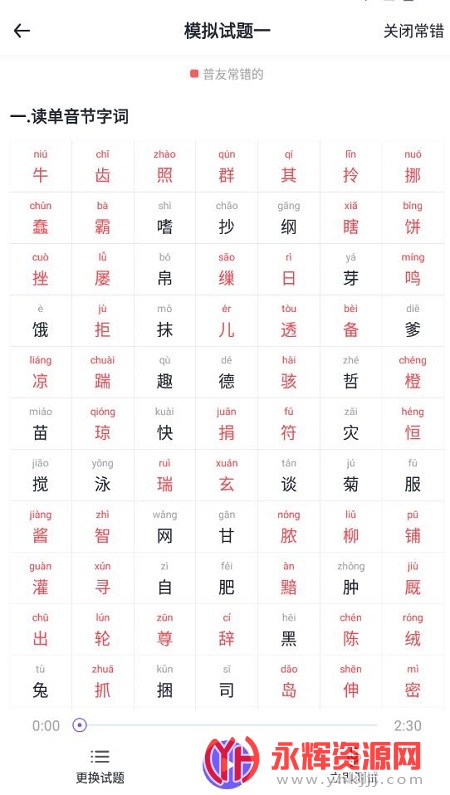 普通话测试分析,发音练习,取长补短每套测试都附有错误分析,帮你指出普通话发音及口音问题