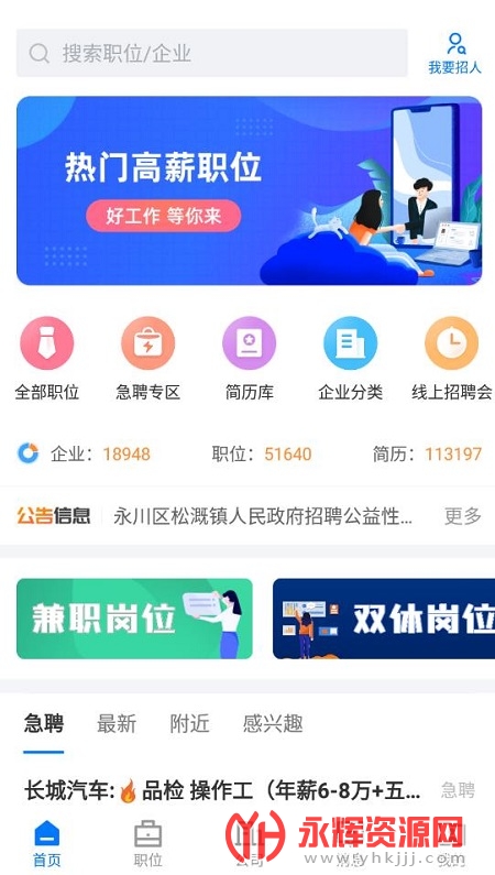 茶竹人才网招聘app是为当地朋友们提供的求职招聘软件,软件中各种工作岗位都是真实可靠的,需要找工作的朋友们可以利用软件找到一份比较适合自己的工作。快来永辉资源网下载吧!