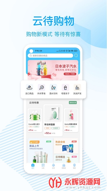 云待商城app是一款十分好用的掌上购物平台,软件中的商品种类十分齐全并且质量也有所保障的,你可以在这里放心进行购物。还在等什么呢?快来永辉资源网下载吧!