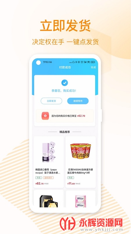购买完成后,您可以选择等待更多的差价返还,也可以选择按新的结算价立即发货,让您的购物多一种选择!
