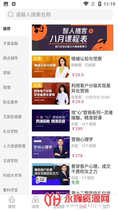 智人播客是一款专业的职场技能学习软件,软件上有着海量的直播课程,包含了各种不同类型的学习知识,多位优秀讲师在线指导,为用户们带来最丰富、最专业的企业学习知识,帮助大家轻松玩转职场!有需要的朋友们就来下载体验吧!