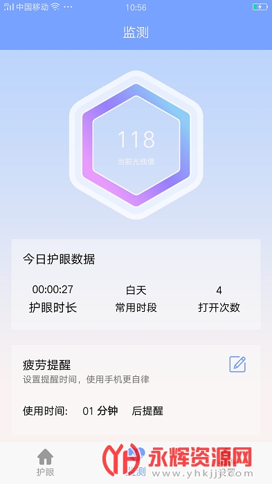 数据监测,查看实时数据,关注每日用眼情况。