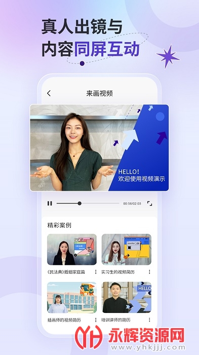 来画视频是一款非常好用的视频演示工具软件,可以将录制好的视频演讲和PPT演示文稿同屏展示,制作成一个多屏互动内容,为用户们带来更加详细的解说,并且软件上提供了海量的模板,适用于多种场景!感兴趣的朋友们就来下载体验吧!