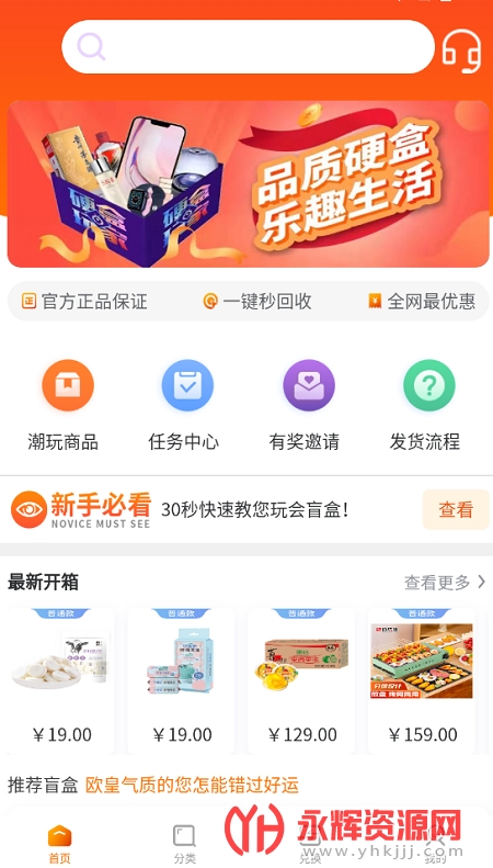 硬盒玩家app是一款全新推出的手机购物商城,软件中有着超多商品种类,还有着不同价位的盲盒可以开启,通过软件开出的商品会为您包邮到家,喜欢开盲盒的朋友们别错过了。快来永辉滋资源网下载吧!