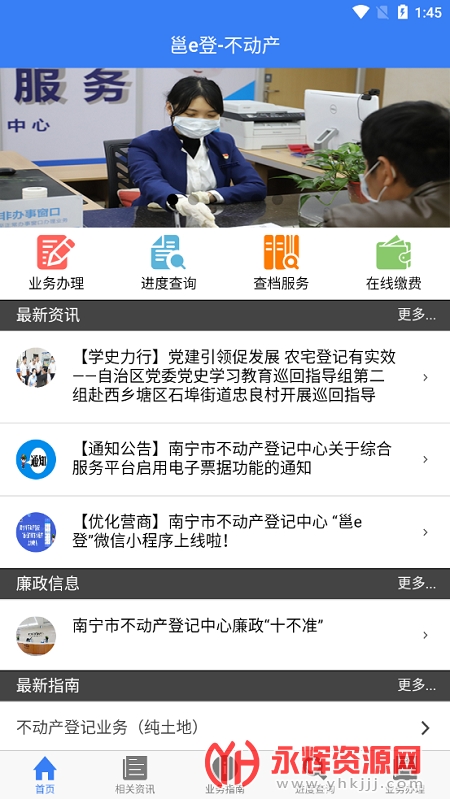 南宁不动产邕e登app是为广西南宁当地市民提供的不动产服务软件,关于不动产相关的业务都可以在手机上快速进行办理,为你省去很多时间。有需要的朋友们欢迎大家来永辉资源网下载哦!