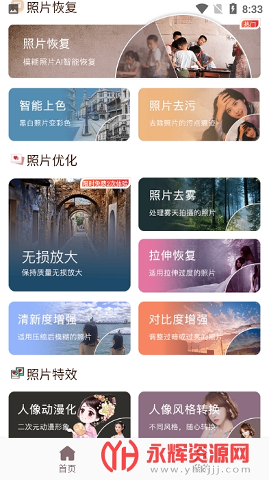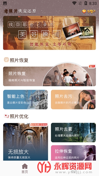 手机老照片恢复软件是一款功能强大的照片修复处理软件,支持老照片恢复还原、照片优化、照片特效等等,可以帮助大家轻松一键修复各种老旧照片,还可以一键美化处理,让你的老照片重新焕发活力!感兴趣的朋友们就来下载吧!
