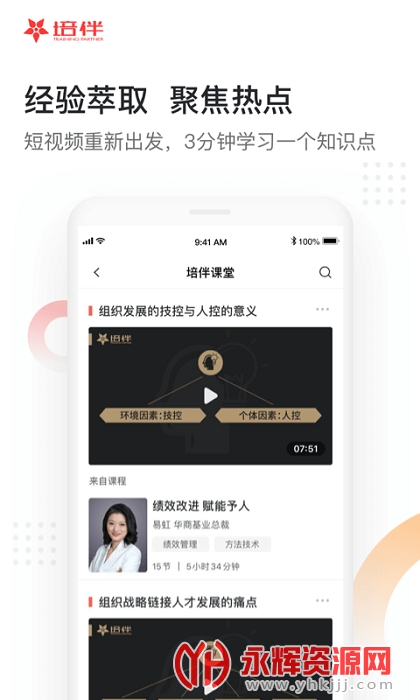 培伴app是一款专为广大用户们打造的培训服务软件,软件上有着海量的精品培训课程,涵盖了丰富的学习内容,为大家带来了众多不一样的知识点,大家可以根据自己的需求,任意的挑选课程学习!欢迎感兴趣的朋友们前来永辉资源网下载!
