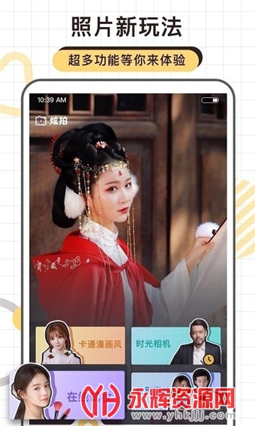 炫拍相机app是有着超多效果的手机拍照软件,在这款软件中热门的滤镜贴纸、漫画脸效果等等都能提供给你,还在等什么呢?快来永辉资源网下载吧!