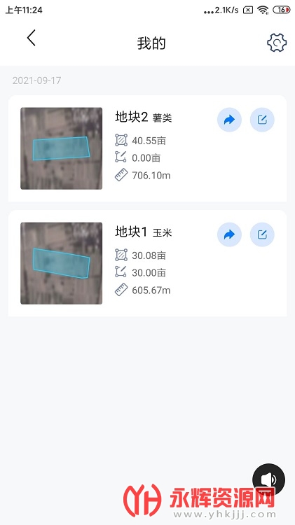 地块列表,你所有的地块都在这里,可以查看轨迹;
