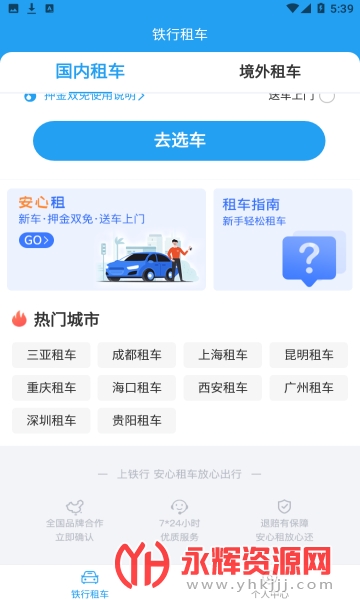 铁行租车app是一款全新推出的汽车租赁平台,软件中有着多种不同车型提供给大家进行租赁,有需要租车方便自己出行的朋友们可以来这里哦,价格也非常实惠的。有需要的朋友们快来永辉资源网下载吧!