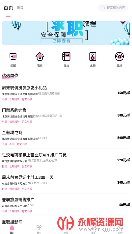 不仅拥有全职,还有针对学生零散的兼职工作,所有的工作岗位都是正规经过平台认真才入驻的企业,同时呢,还有一键投递简历,非常便捷
