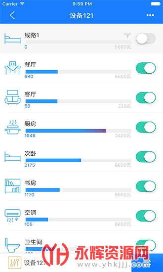 报表:可以通过app提供的报表信息,了解各个智能家居设备的用电情况;
