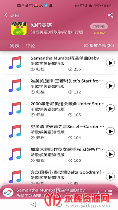 英语歌曲,软件上有上千篇英文歌曲和节目,让用户们根据自己需求挑选。